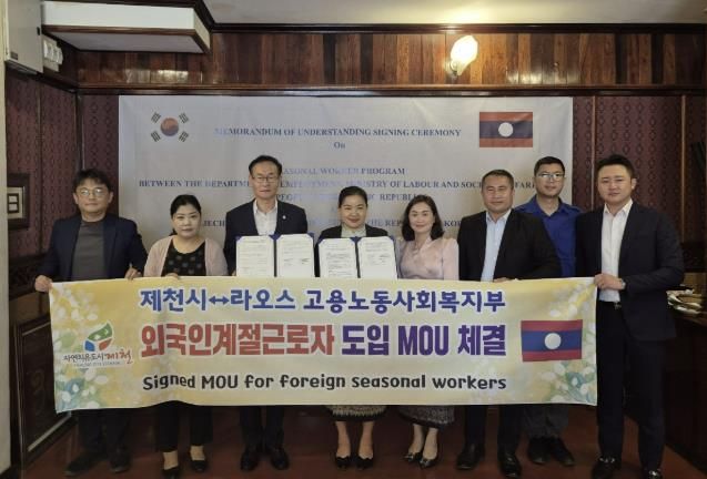 인사이드피플 노재현 기자 | 제천시는 지난 9월 30일 라오스 노동사회복지부와 외국인 계절근로자 도입을 위한 신규 업무협약(MOU) 을 체결했다. 이번 협약은 농번기 원활한 인력 공급을 위해 추진된 것으로, 특히 농촌 인력 공급 국가를 다변화해 불확실성을 최소화하는 데 목적이 있다.
