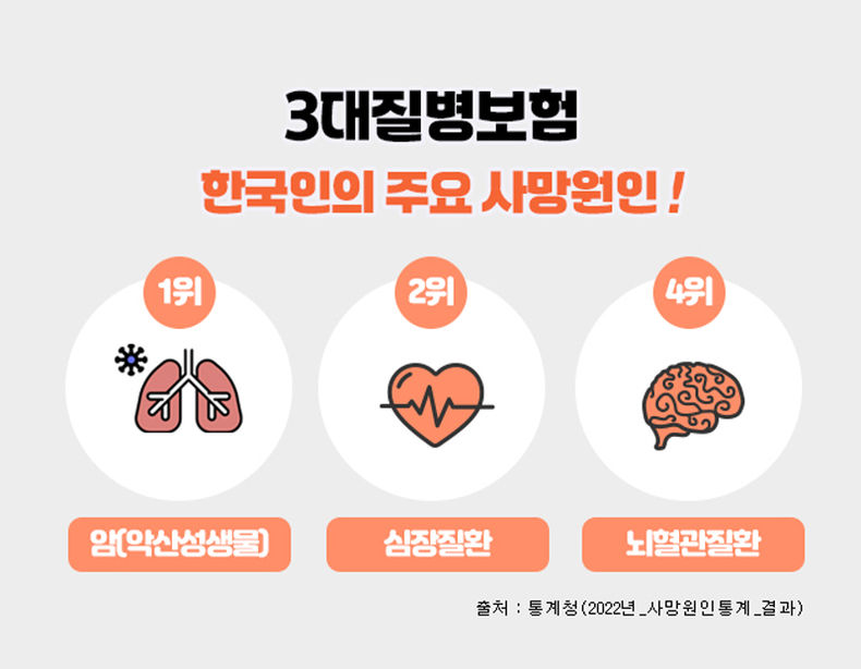 인사이드피플 조은설 기자 | 3대질병으로 일컬어지는 암, 뇌혈관질환, 심혈관질환은 한국인의 주요 사망원인에서 상위를 차지하고 있으며, 이에 대한 진단비를 집중적으로 보장해 주는 보험상품을 3대질병진단비 보험이라 할 수 있다.