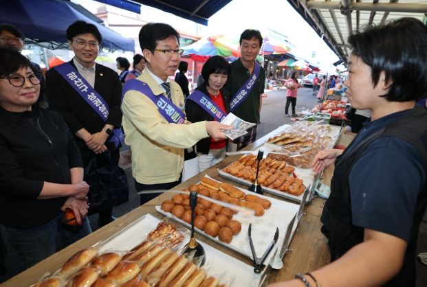 박병규 청장은 이날 전통시장 이용 분위기 확산과 지역상권 활성화를 위해 전통시장 상인들을 격려하고 온누리상품권으로 제수 등을 구매했다.