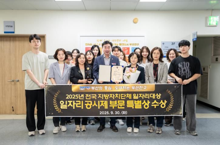 인사이드피플 노재현 기자 | 부산 부산진구가 고용노동부 주관 ‘2025 전국 지방자치단체 일자리대상’ 지역일자리 목표 공시제 부문에서 특별상을 수상했다고 밝혔다.