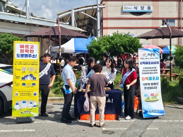 인사이드피플 노재현 기자 | 전남 무안군은 2025년 추석 명절을 맞이하여 29일 오전 무안전통시장을 찾아 지역 주민들과 시장 방문객들을 대상으로 지적재조사사업 및 도로명주소 합동 홍보를 실시했다.