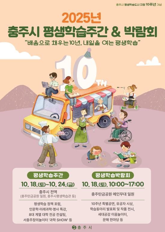 인사이드피플 강애자 기자 | 충주시는 평생학습도시 지정 10주년을 맞아 오는 18일부터 24일까지 '2025년 충주시 평생학습주간'을 개최한다고 14일 밝혔다.