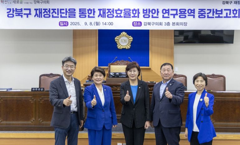 최미경 대표의원은 “이번 연구가 단순한 분석에 그치지 않고 강북구 재정 운영의 실질적인 개선으로 이어질 수 있도록 최선을 다하겠다”며 “구민의 삶의 질 향상으로 이어질 수 있는 합리적인 재정 혁신 방안을 마련해 나가겠다”고 말했다.