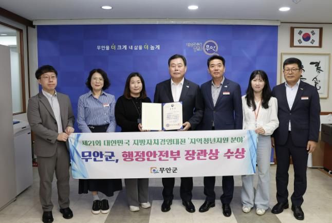 인사이드피플 노재현 기자 | 전남 무안군은 행정안전부와 한국일보가 공동으로 주최한 '제21회 대한민국 지방자치경영대전'에서 지역청년 지원 분야 우수기관으로 선정되어 행정안전부 장관 표창을 수상했다.