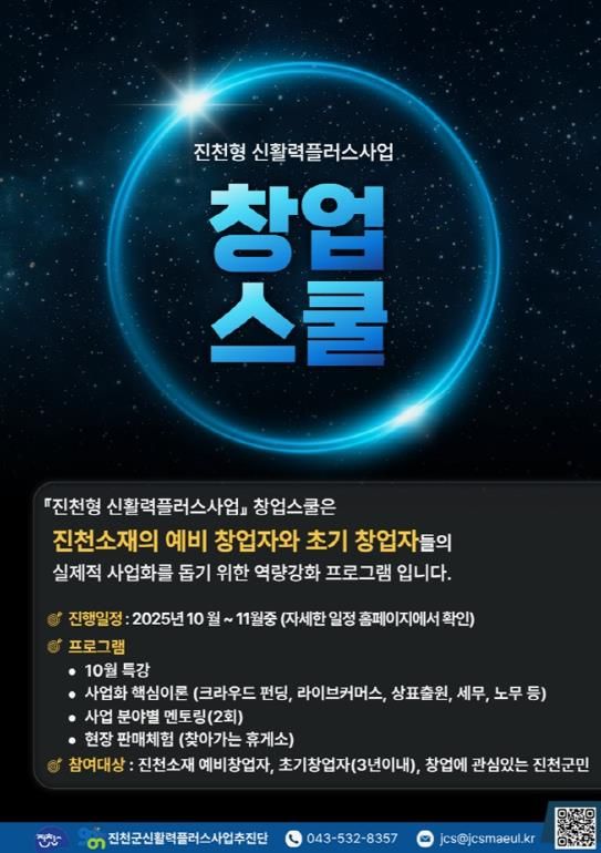 인사이드피플 노재현 기자 | 충북 진천군 신활력플러스사업 추진단은 오는 11월까지 약 2개월간 지역 창업 역량을 높이고, 창업 꿈을 현실로 만드는 ‘진천형 신활력플러스사업 창업스쿨’을 본격 운영한다고 15일 밝혔다.