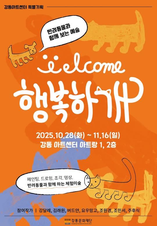 인사이드피플 강애자 기자 | 강동문화재단은 오는 10월 28일부터 11월 16일까지 강동아트센터 아트랑에서 반려동물과 함께 예술을 경험할 수 있는 전시 《행복하개展》을 선보인다.