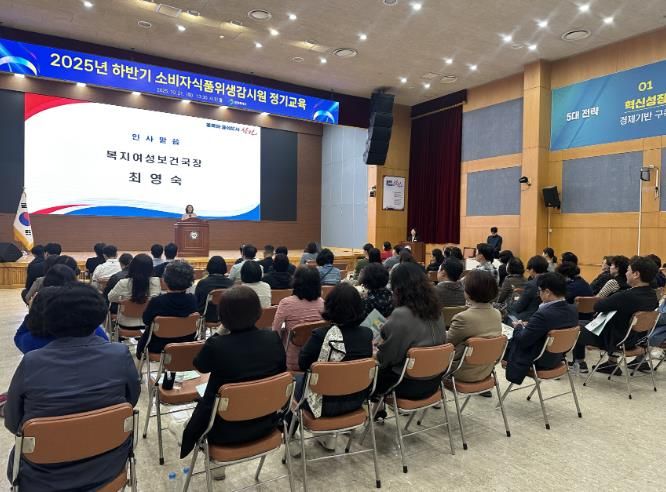 인사이드피플 노재현 기자 | 창원특례시는 21일 소비자식품위생감시원 101명을 대상으로 ‘2025년 하반기 소비자식품위생감시원 정기교육’을 실시했다.