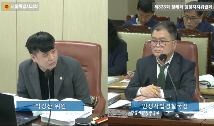인사이드피플 김재윤 기자 | 서울시의회 박강산 의원(더불어민주당 비례대표)은 7일 서울시 민생사법경찰국 대상으로 한 2025년도 행정자치위원회 행정사무감사에서 성과지표가 시민의 체감에 동떨어진 지표로 운영되고 있다며 전면적인 개선을 촉구했다.