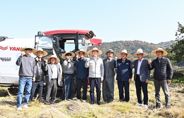 김장호 구미시장은 이날 농작업 전 과정을 함께하며 농업인들과 수확의 기쁨을 나눴다. 그는 “올해는 이상기후로 벼깨씨무늬병이 확산돼 농가의 걱정이 컸지만, 땀과 정성으로 위기를 이겨낸 농민들께 감사드린다”며 “구미쌀이 대한민국을 대표하는 브랜드로 자리 잡을 수 있도록 적극 지원하겠다”고 했다.