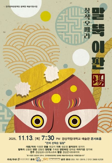 인사이드피플 노재현 기자 | 경상국립대학교 음악교육과 최강지 교수가 이끄는 경상오페라단은 진주의 대표 민속예술 ‘진주 오광대’를 모티브로 한 창작오페라 '말뚝이판場'(작사·작곡 이정연)을 11월 13일 오후 7시 30분 경상국립대학교 음악교육과 콘서트홀에서 초연한다.