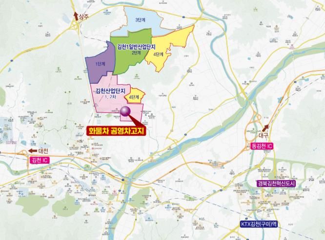 대상부지는 김천산업단지 내(대광동 1343 일원)에 위치하며, 총면적 35,000㎡로 266대의 주차면과 관리동 등이 설치된다.
