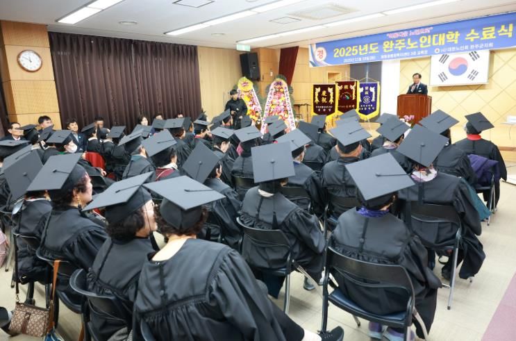 인사이드피플 노재현 기자 | 완주노인대학이 18일 봉동읍행정복지센터에서 2025년 수료식을 열고, 80명 어르신들이 8개월간의 평생학습 여정을 마무리했다.