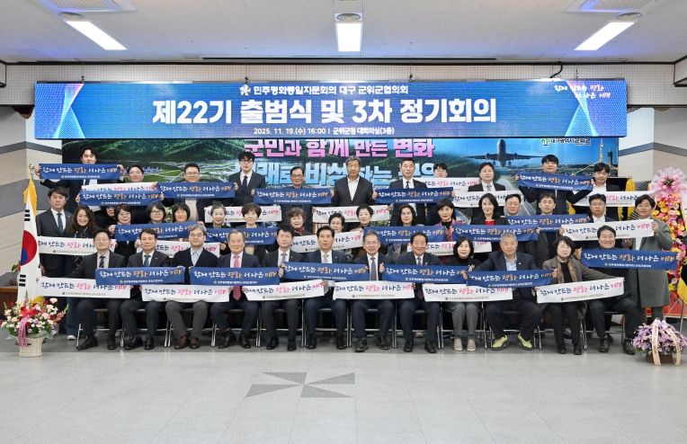 인사이드피플 노재현 기자 | 민주평화통일자문회의 군위군협의회(협의회장 전기식)는 11월 19일 오후 16시 군위군청 대회의실에서 군위군수, 자문위원 등 50명이 참석한 가운데 ‘제22기 출범식 및 2025년 3차 정기회의’을 개최했다.