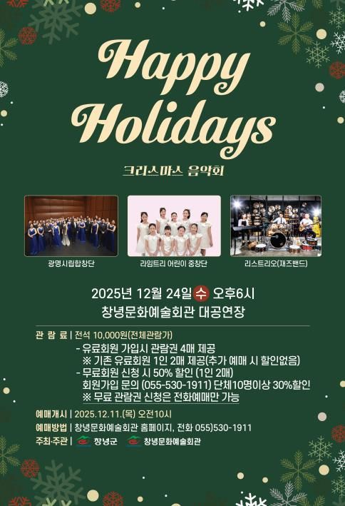 인사이드피플 강애자 기자 | 창녕군은 오는 24일 오후 6시 창녕문화예술회관 대공연장에서 온 가족이 함께 즐길 수 있는 기획공연 ‘크리스마스 음악회’를 개최한다고 밝혔다.