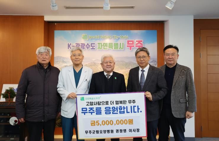 인사이드피플 노재현 기자 | 무주군으로부터 무주군립요양병원을 위탁받아 운영하는 (사)소산 권창영 이사장이 고향사랑기부금 5백만 원을 기탁했다. 이날 기탁식에는 권도훈 무주군립요양병원장과 임원진 등 4명이 함께 해 의미를 더했다.