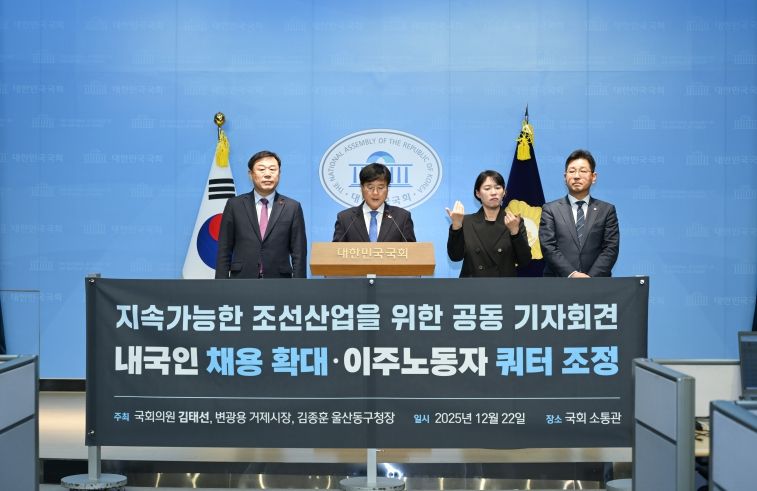 인사이드피플 노재현 기자 | 변광용 거제시장은 지난 22일 김태선 국회의원(울산동구, 환경노동위), 김종훈 울산 동구청장과 함께 국회 소통관에서 기자회견을 열고, ‘조선산업기본법’ 제정, 내국인 채용 확대, 외국인 쿼터 축소를 골자로 한 고용구조 전환의 필요성을 정부에 촉구했다.
