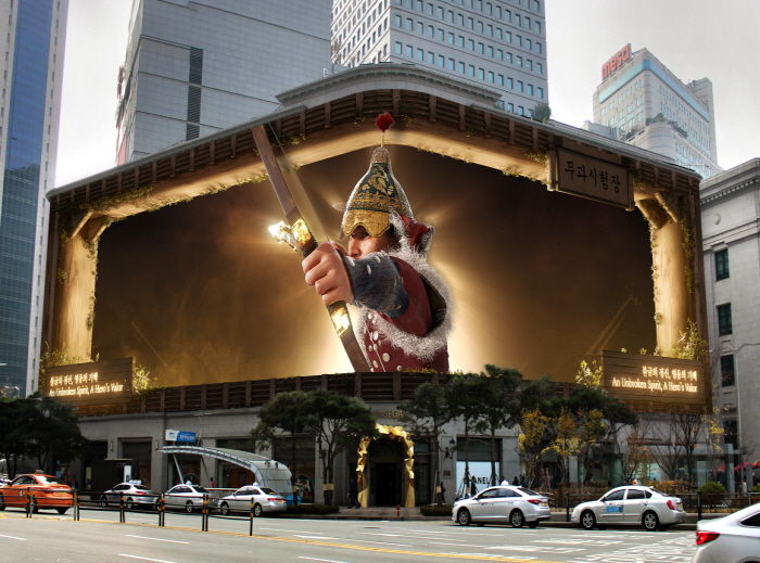 영상은 아나모픽(Anamorphic) 기법이 적용돼 금빛 파티클과 함께 펼쳐지는 백학(鶴)의 날개, 시대와 공간을 가로지르는 화살의 움직임 등 주요 장면들이 화면을 뚫고 나오는 듯한 입체감과 몰입감을 선사한다. 또한 초대형 LED 디스플레이에 최적화된 색감과 밝기, 입체 왜곡 보정 기술을 적용해 주·야간 모두 높은 가시성과 완성도를 확보했다.