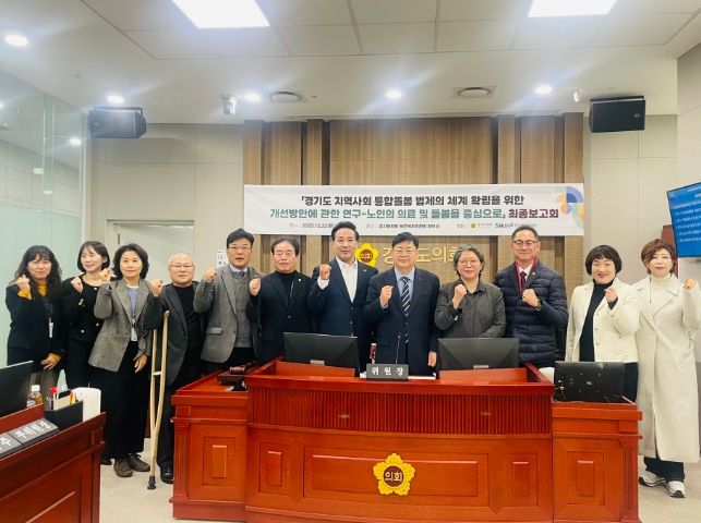 인사이드피플 김재윤 기자 | 경기도의회 보건복지위원회 연구단체인 보건복지연구회(회장 이선구 위원장, 더불어민주당, 부천2)는 12월 22일, '경기도 지역사회 통합돌봄 체계 확립을 위한 개선방안에 관한 연구'를 주제로 연구용역 최종보고회를 개최했다.