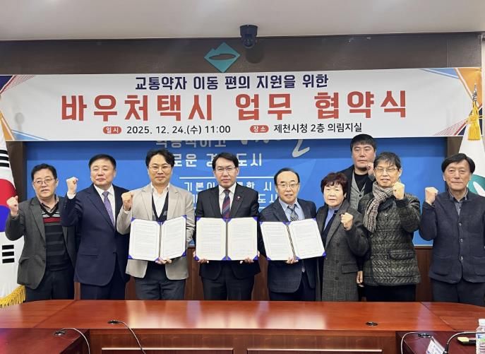 인사이드피플 노재현 기자 | 제천시는 지난 24일 교통약자의 이동권 보장과 이동 편의 증진을 위해 청풍호콜센터, ㈜티머니 모빌리티와 바우처택시 업무협약을 체결했다.