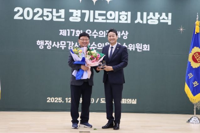 인사이드피플 김재윤 기자 | 경기도의회 교육기획위원회 이택수 의원(국민의힘, 고양8)과 성기황 의원(더불어민주당, 군포2)이 26일 열린 2025년 경기도의회 시상식에서 ‘2025년 행정사무감사 우수위원’으로 선정됐다.