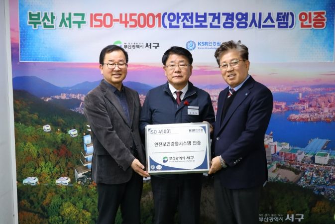 인사이드피플 노재현 기자 | 부산 서구는 국제 인증 심사기관인 KSR인증원으로부터 국제 표준 안전보건경영시스템(ISO45001) 인증을 획득해 지난 29일 오후 2시 30분 인증서 수여식을 가졌다.