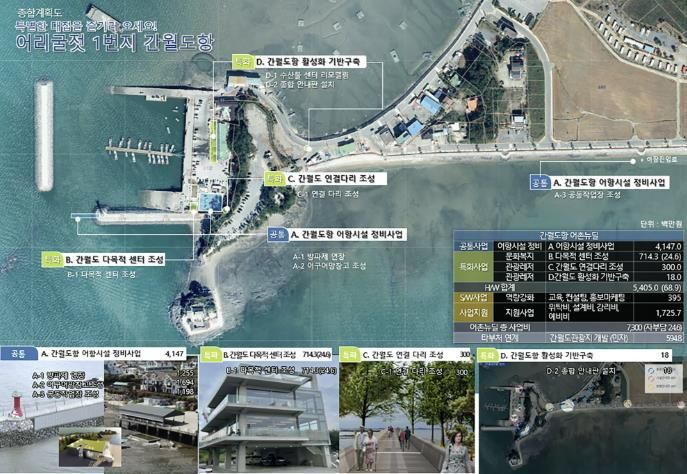 주요 사업으로 간월암과 간월도항을 직접 연결하는 다리를 신설하며, 이를 통해 간월암을 방문한 관광객이 상권이 형성된 간월도항으로 자연스럽게 이동할 수 있게 될 전망이다.