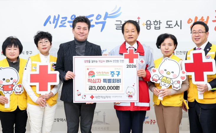 인사이드피플 노재현 기자 | 인천시 중구는 병오년 새해를 맞이해 대한적십자사 인천지사에 ‘2026년도 적십자 특별회비’ 300만 원을 전달하며 나눔과 상생의 가치를 실천했다고 7일 밝혔다.