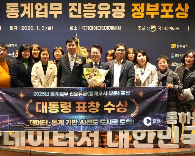 인사이드피플 노재현 기자 | 춘천시가 9일 2025년 통계업무 유공을 인정받아 강원특별자치도 18개 시군 중 최초로 대통령 표창을 수상했다.