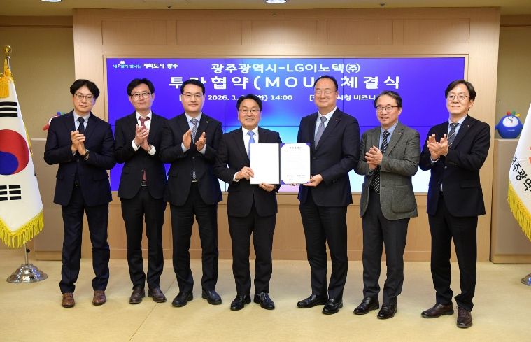 인사이드피플 노재현 기자 | 광주광역시와 LG이노텍은 13일 시청 비즈니스룸에서 ‘차량용 제어모듈 신규 생산라인 구축을 위한 투자협약’을 체결했다. 이번 협약은 2026년 새해 부강한 광주로의 힘찬 도약을 알리는 첫 신호탄이다.