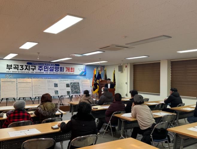 인사이드피플 노재현 기자 | 김천시는 2026년 지적재조사사업 실시계획에 따른 사업지구 지정을 위하여 1월 13일 평화동 보훈회관에서 부곡3지구 토지소유자 및 이해관계인 등을 대상으로 주민설명회를 개최했다.