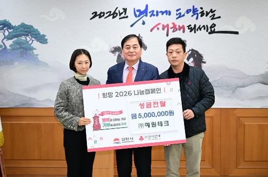 인사이드피플 노재현 기자 | 김천시는 지난 15일, ㈜예원테크(대표 정재욱)로부터 희망2026나눔캠페인 성금 500만 원을 전달받았다고 밝혔다.