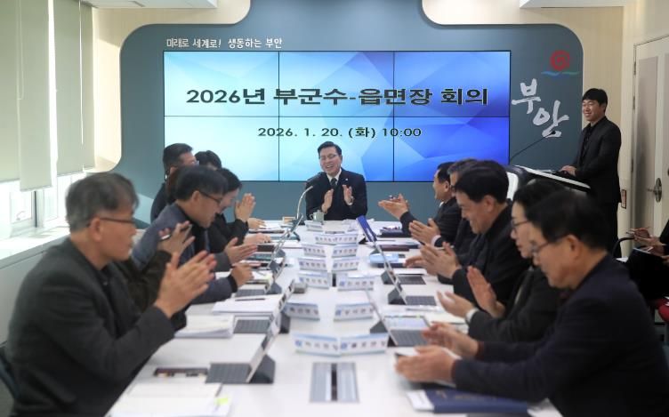 인사이드피플 노재현 기자 | 부안군은 20일 군청 3층 중회의실에서 정화영 부군수 주재로 2026년 부군수-읍·면장 회의를 개최하고 2025년 주요 성과와 2026년 군정 운영방향을 공유하며 읍·면 현안에 대한 사전 점검에 나섰다고 밝혔다.