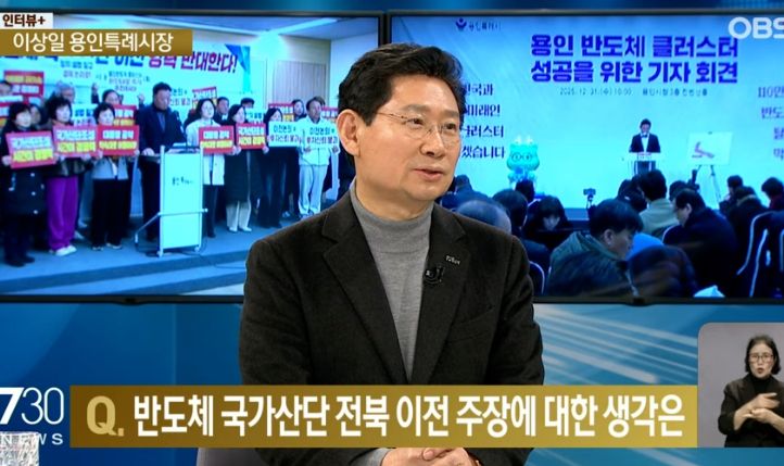 인사이드피플 노재현 기자 | 이상일 용인특례시장은 20일 저녁 OBS ‘뉴스 730’에 출연해 반도체 국가산단 지방이전에 대해 “새만금에는 새만금에 맞는 신규 투자를 하는 게 옳다. 용인 반도체 국가산단을 국가전략산업의 미래 경쟁력을 키우는 관점에서 봤으면 한다”고 했다.