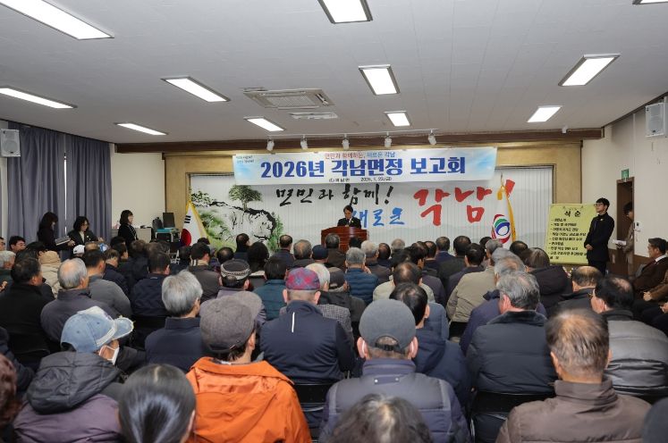 군정 홍보영상 상영을 시작으로 인재육성장학금 및 노인복지기금 등 기탁식, 퇴임 이장 공로패 및 신임 이장 뱃지 전달, 읍․면별 핵심 현안보고, 2026년 군정 주요 추진현황, 현안 토의 순으로 이어졌다.