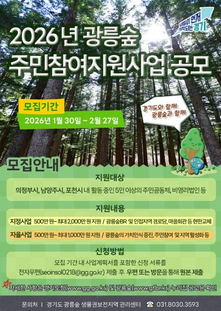 인사이드피플 노재현 기자 | 경기도가 광릉숲 생물권보전지역 활성화를 위해 2026년 광릉숲 주민참여지원사업 참여자를 모집한다.