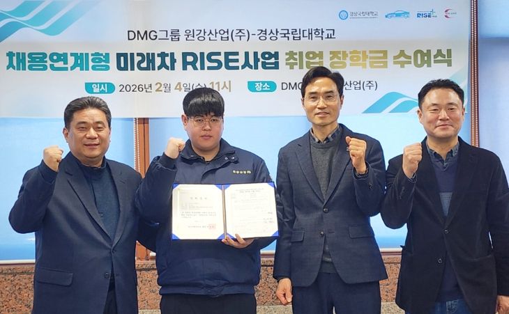 인사이드피플 노재현 기자 | 경상국립대학교는 2월 4일 오전 11시 함안군에 소재한 원강산업(주) 회의실에서 ‘채용연계형 미래차 RISE사업 취업 장학금 수여식’을 개최했다.