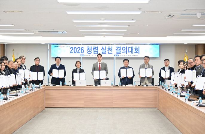 군수 주재로 진행된 이번 보고회에서는 2026년도 청렴 시책이 공유되었으며, 이를 통해 전 공직자의 적극적인 청렴시책 참여를 유도했다. 특히, 간부공무원들은 반부패·청렴 서약서를 작성하며 청렴 실천 의지를 다졌다.