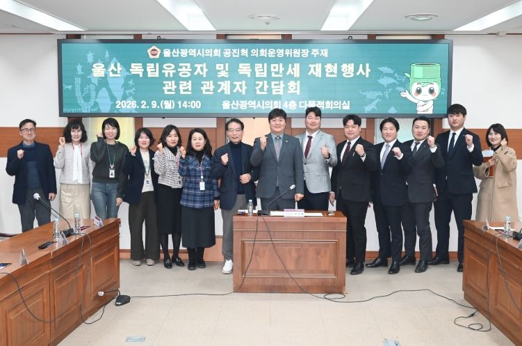 인사이드피플 김재윤 기자 | 울산광역시의회 공진혁 의원(의회운영위원장)이 9일 오후 2시 시의회 4층 다목적회의실에서 독립유공자 후손 예우 강화 및 3·1독립만세 운동을 기념하는 재현행사 관련 간담회를 개최했다.