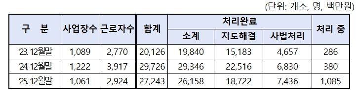 광주지방고용노동청에 따르면 지난해 12월 말 기준 도내 체불임금은 누계 272억원으로 2024년도 297억원 대비 8.4% 감소했다.