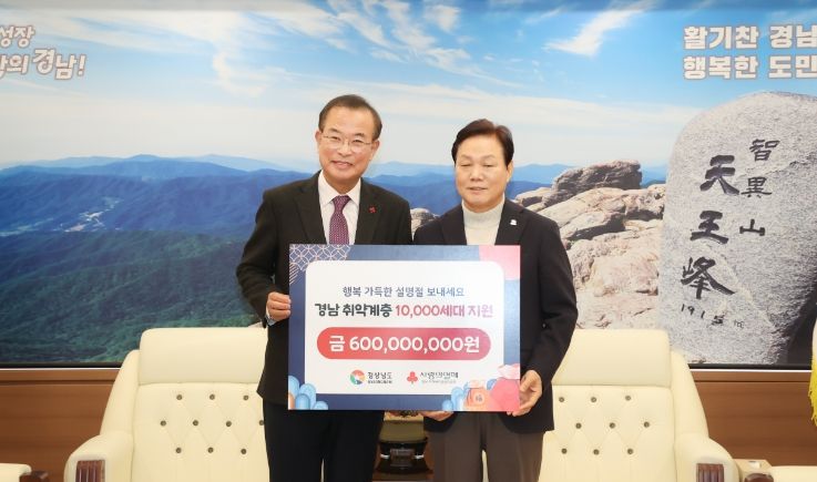 한편, 경남도는 지난 9일 설 명절 취약계층 지원대책을 발표하고, 명절 전 사회보장급여 조기 지급과 함께 연휴기간 중 어르신 안부 확인, 장애인 돌봄 강화, 결식아동 지원 등을 차질 없이 추진할 계획이다.