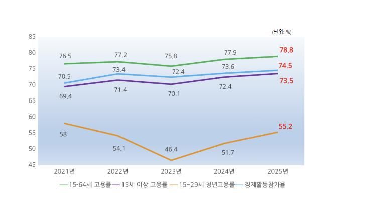 이는 지난해 2월과 8월에 각각 발표된 ‘2024년 하반기’와 ‘2025년 상반기’ 고용지표에 이어 4개 분야 연속 도내 1위를 달성한 것으로, 녹록지 않은 경제 여건에서 거둔 성과라는 점에서 그 가치가 돋보인다.