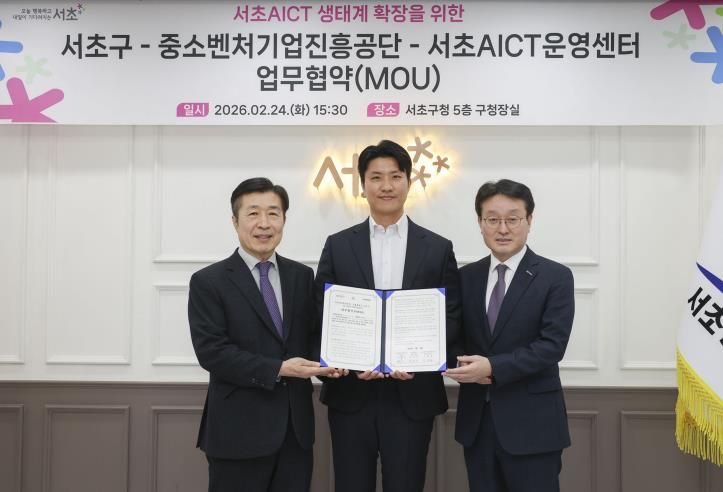 인사이드피플 노재현 기자 | 서울 서초구는 24일 중소벤처기업진흥공단, 서초AICT운영센터와 3자 업무협약을 체결하며 서초AICT 내 인공지능(AI), 정보통신기술(ICT) 분야 중소·벤처기업의 육성과 혁신 생태계 조성에 힘을 모으기로 했다.