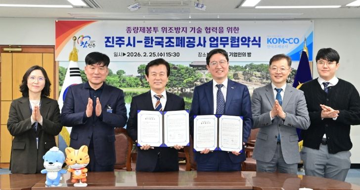 이날 협약식에는 조규일 진주시장과 성창훈 한국조폐공사 사장을 비롯해 두 기관의 관계자 5명이 참석해 종량제봉투의 불법 유통 차단과 정품 인증 체계를 구축하기 위한 협력 방안을 논의했다.