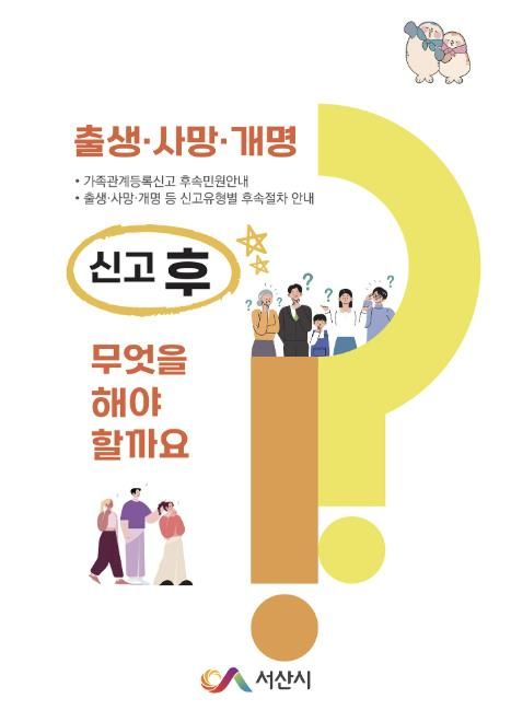인사이드피플 노재현 기자 | 충남 서산시는 가족관계등록신고에 대한 후속민원을 한눈에 알아볼 수 있도록 ‘출생ㆍ사망ㆍ개명 신고 후 무엇을 해야 할까요?’ 책자를 발간했다고 밝혔다.