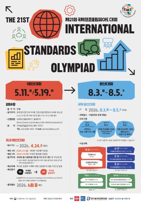 인사이드피플 노재현 기자 | 산업통상부 국가기술표준원은 금년 8월에 개최되는 세계 청소년 표준화 경진대회인 '제21회 국제표준올림피아드'에 참가할 한국대표팀 선발을 위해 3월 5일부터 국내 예선대회 참가팀 모집을 시작한다.