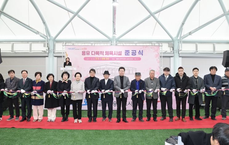 이날 준공식에서는 기념사·축사, 테이프 자르기, 기념 촬영, 시설 순회 등을 진행하며, 다목적 체육시설의 준공을 축하했다.