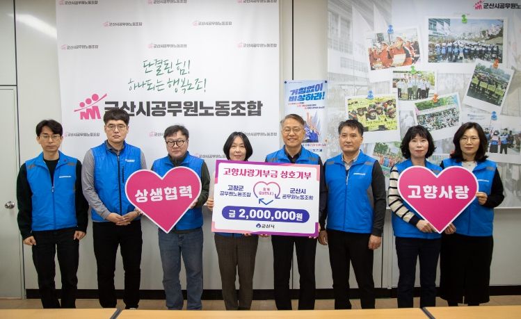 안남귀 고창군공무원노동조합 위원장도 “이번 상호 기부가 단순한 기부를 넘어 서로를 응원하고 함께 성장하길 기대하는 마음에 동참했으며, 고향사랑기부제 정착과 지역 사회 발전을 위해 더 노력하겠다”고 말했다.