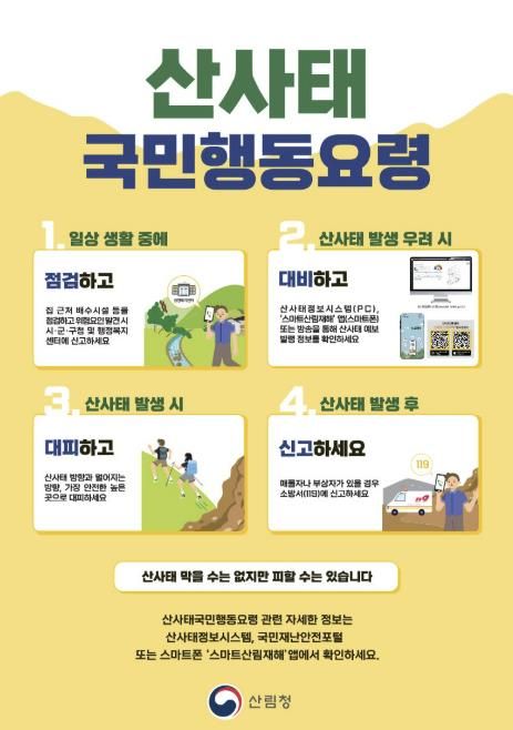 아울러 산사태취약지역 내 거주민과 인근 주민을 대상으로 산사태 국민 행동 요령을 홍보해 비상 상황 발생 시 신속한 대피가 이루어질 수 있도록 할 계획이다. 점검 결과 경미한 사항은 현장에서 즉시 조치하고, 산사태 발생 우려가 높은 구간은 정밀점검을 거쳐 보수·보강 등 필요한 조치를 순차적으로 추진한다.