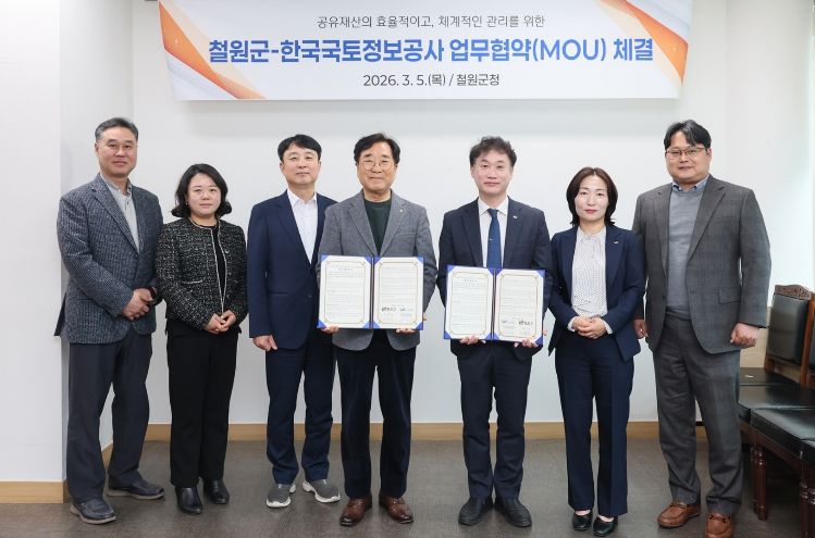 인사이드피플 노재현 기자 | 철원군은 3월 5일 철원군청에서 한국국토정보공사(LX) 강원지역본부와 ‘공유재산 정밀 실태조사 업무협약(MOU)’을 체결했다.