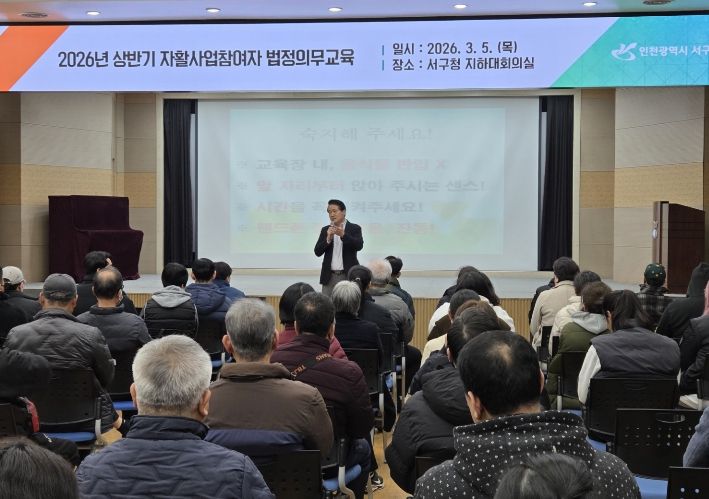 인사이드피플 노재현 기자 | 인천 서구는 지난 5일 자활사업 참여자 250여 명을 대상으로 ‘2026년 상반기 법정의무교육’을 실시했다고 밝혔다.